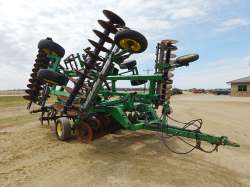 Description: 26.5' C Flex Disk, w/ 3 Bar Coil Tine Harrow, Hyd F&A on Hitch, 21' Front Blades, 22' Rear Blades, Walking Tandems, 12.5L x 15 Tires