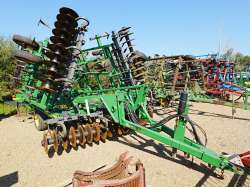 Description: 24' Soil Finisher, Walking Tandems, 5 Tine Harrow, 18' Front Blades, 10' Knock Off Sweeps, New Style Shank